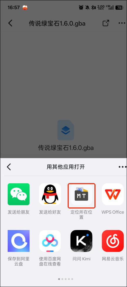 1、开始游玩前需要先下载游戏GBA文件,这里小编附上了下载地址。然后打开方式MT来定位位置,或者手机自带的文件管家也可以。