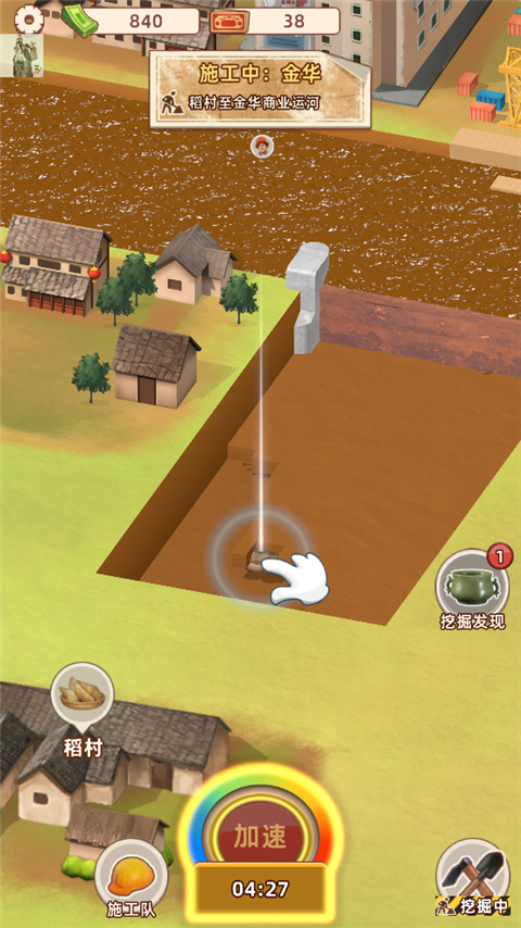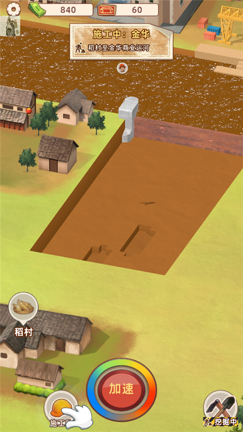 7、之后施工队会开始挖运河,我们点击加速键可以加速挖掘进度;