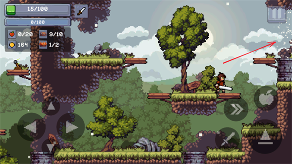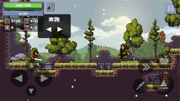 2、左边控制角色的移动,右边是攻击、冲刺、跳跃和投掷苹果。