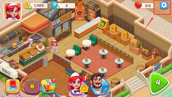 1、打开游戏,进入游戏首页,点击右上角设置