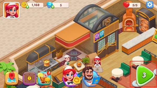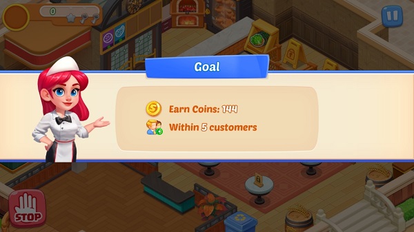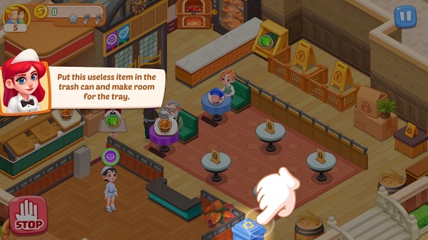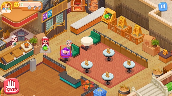 3、客人来了手动将顾客拖到餐厅座位上,点击厨师开始上菜