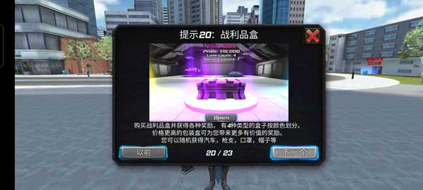 9、购买战利品盒并获得各种奖励。有4种类型的盒子按颜色划分。价格更高的包装盒可为您带来更多有价值的奖励。您可以随机获得汽车,枪支,口罩,帽子等。