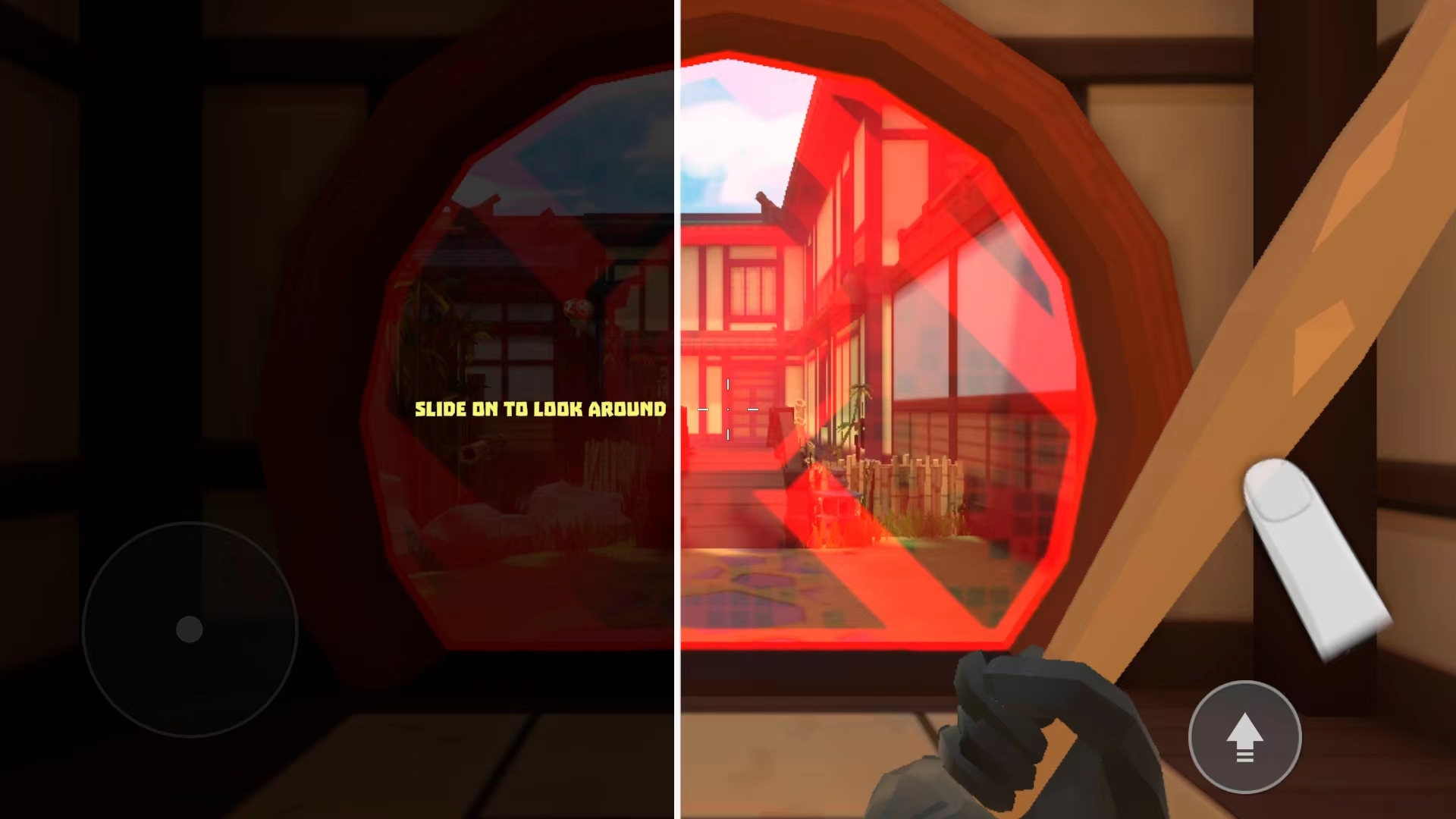 2、游戏控制分为左右两块区域,左边控制角色移动,右边控制视角,