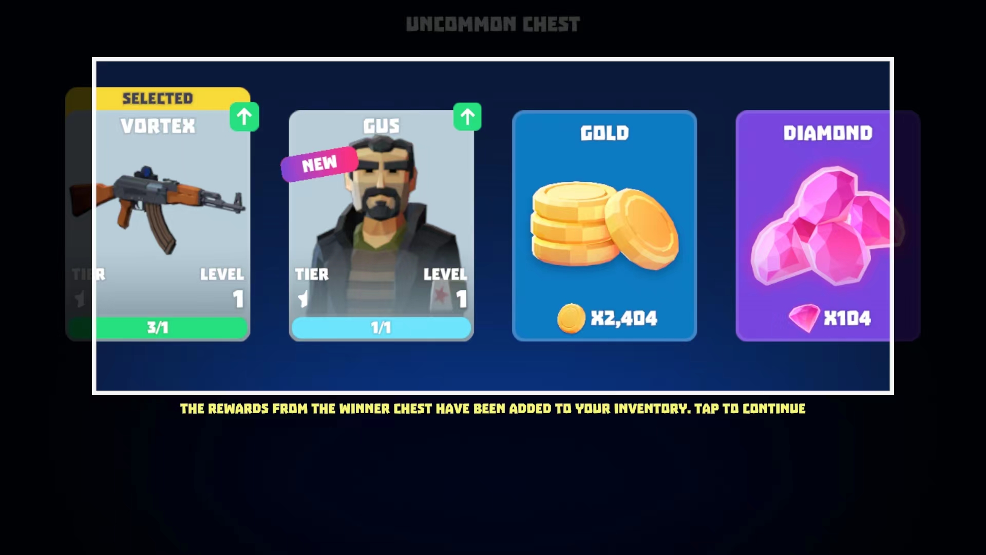 9、游戏胜利后可以获得武器碎片、角色、金币和钻石等游戏奖励,