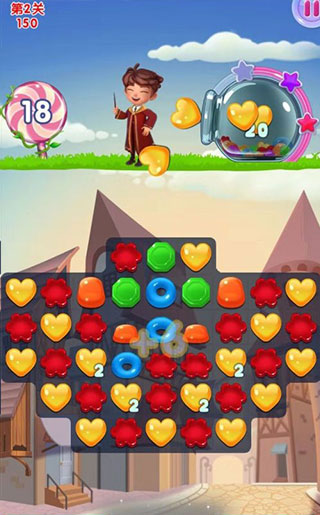 1、三个颜色相同的糖果连在一起就可以收集,这就是魔法的力量,每个关卡都有收集的目标,完成目标就可通关下一个关卡