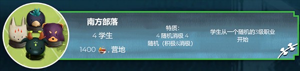 南方部落来自“世界之眼”南部地区。领导他们既是一种乐趣,也是一种挑战,因为没有人能够预测这些充满活力和情谊的学生的命运与性格。南方人是一个团结的群体,他们将彼此视为家人,紧密相连。他们也是不折不扣的行动派,从一开始就擅长游牧职业。