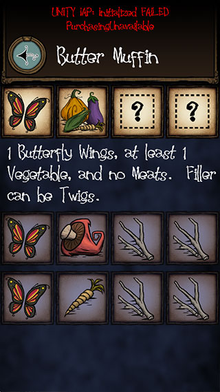2、frogglebunwich(蛙腿土司?):蛙腿+1蔬菜+2树枝(蛙腿换蝴蝶也是个不错的蝴蝶松饼)