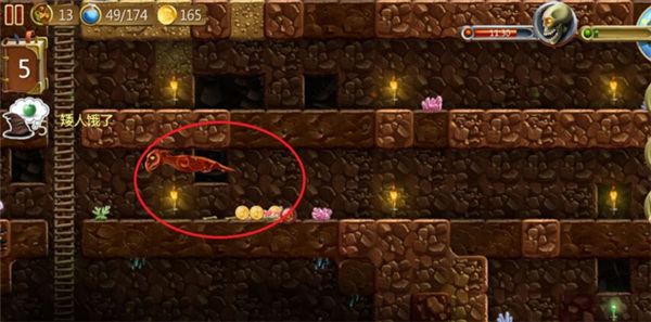 3、接着使用魔法火球,或指挥矮人将红龙击杀,就会掉落大量的金币和龙肉。