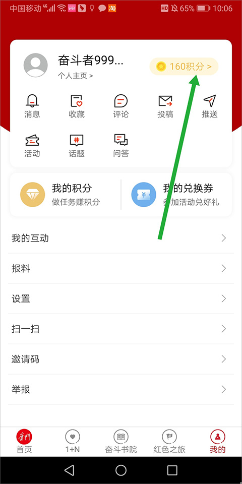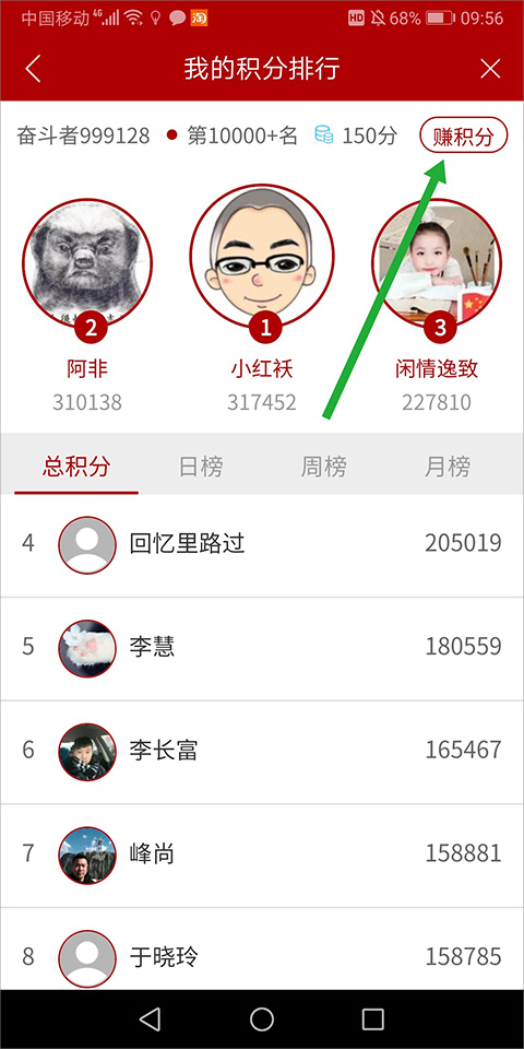 2、在新打开的页面中点击右上角的【赚积分】(下图绿色箭头所指)