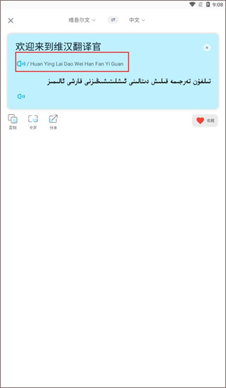 3、在翻译出的内容里,点击语音按钮就可播放出翻译的内容,你可以跟着语音学习;