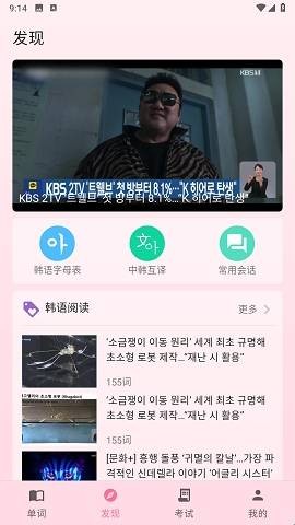 2、发现页面可以看到很多韩语文章可以阅读。