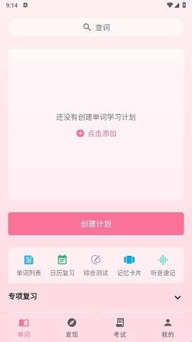 1、打开软件,在单词页面可以添加单词,创建学习计划。