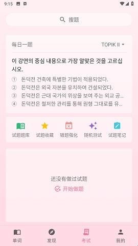 韩语学习君是一款专为韩语初学者和考试备考人群设计的专业韩语学习软件,收录延世韩国语教材、TOPIK考试词库、分类词汇等海量资源,涵盖字母表、发音、单词、语法、真题等学习内容,内置科学记忆曲线背词计划,支持听音辨意、拼写速记、中文选词等多种复习模式,提供错题、已学、未学单词的清晰分类,学习进度一目了然。提供模拟真实TOPIK考试的功能,包括每日一题、错题强化、随机测试和试题笔记等,从容应对考试。