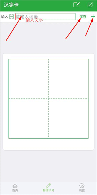 4、打开制作卡片页面,输入汉字,保存就制作好了,在首页我的卡片可以查看;