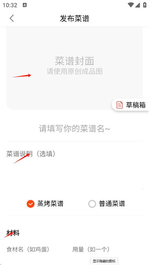 3、然后需要填写下你的菜名,做法和步骤。