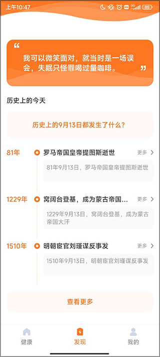 3、点击发现可以查看历史上的今天所发生的重要事件。
